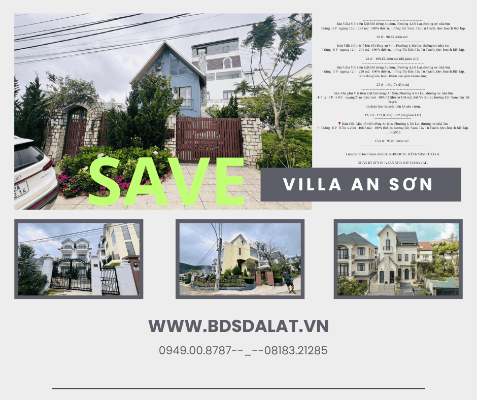 Bán Villa Mặt tiền KQH Sổ riêng An Sơn, Phường 4, Đà Lạt, đường trc nhà 9m