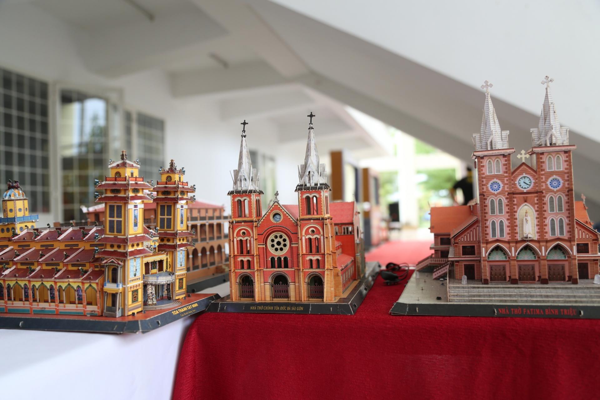Mô hình bằng giấy Tòa Thánh Cao Đài, nhà thờ Đức Bà Sài Gòn và nhà thờ Fatima Bình Triệu sống động như thật