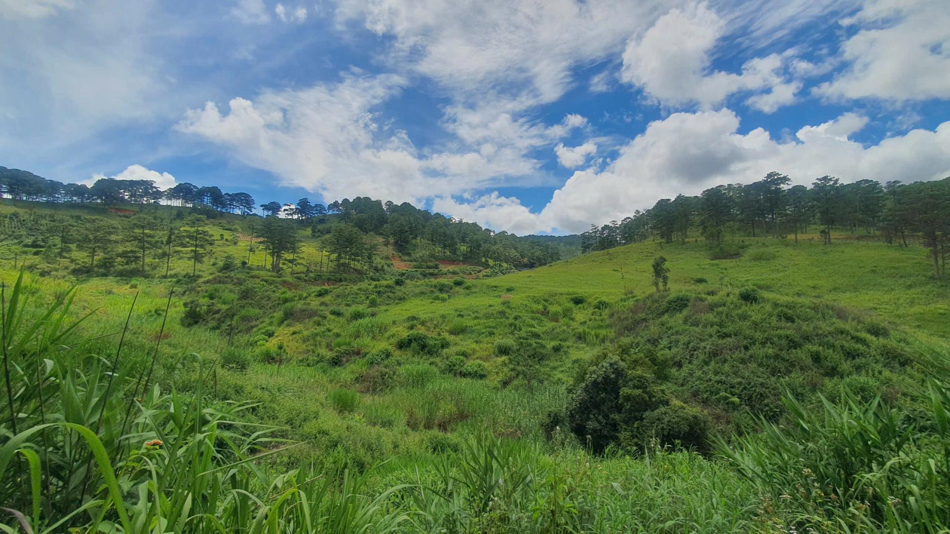 - Hiện trạng đất trống. Thế đất triền lài. Xung quanh là đồi thông. Trên đất có hồ và suối cuối đất.