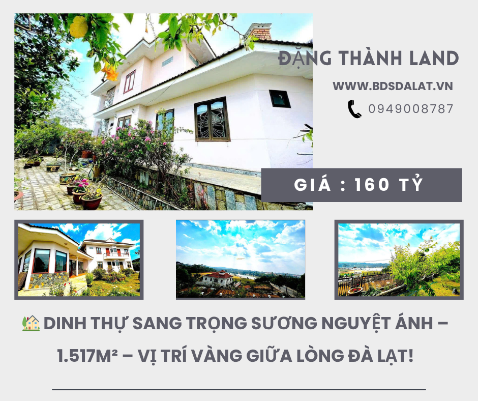 Mô tả: Biệt thự được xây dựng theo kiến trúc sân vườn thoáng mát. Vị trí biệt thự nằm ngay mặt tiền đường nhựa chính, gần khu dân cư an ninh có đầy đủ tiện ích xã hội. Cách Hồ Xuân Hương tầm 1km rất thích hợp an cư, nghỉ dưỡng, kinh doanh lưu trú cao cấp,.. 160 tỷ - 105,471 triệu/m2